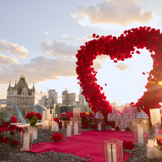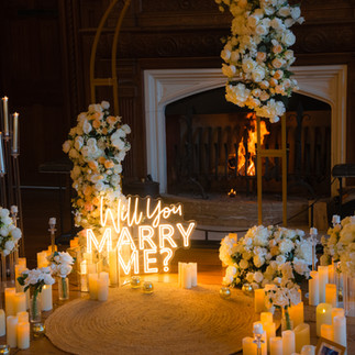 Flowers do more than decorate, they create an atmosphere. Think about lush arrangement of roses, seasonal blooms, and greenery, styled as arches, pedestals, or ground displays. If you have ever imagined proposing under a flower arch that frames the perfect “yes,” this is the one. It’s romantic, dramatic, and made for photos you’ll treasure forever.